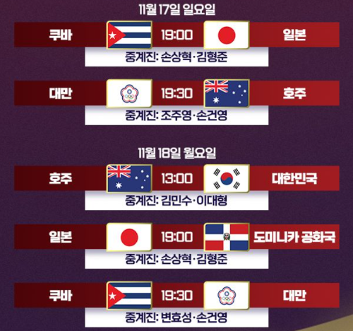 대한민국 쿠바 2경기일정