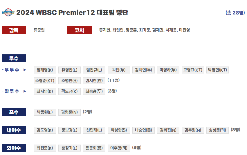 프리미어12 대표팀 명단