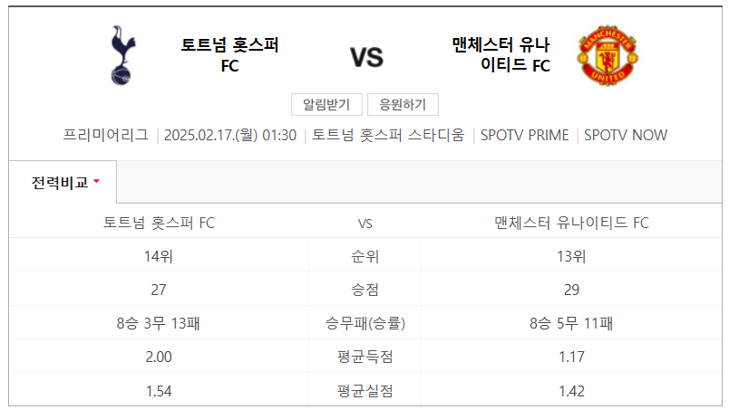 이번 맨유 토트넘 중계 일정에서 양 팀 모두 반드시 승리가 필요한 경기이기 때문에, 초반부터 적극적인 공세가 예상됩니다.