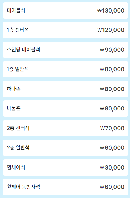 경기 티켓은 쿠팡 와우회원만 구매 가능하며, 예매는 쿠팡플레이 앱에서만 할 수 있습니다. 티켓 가격은 좌석에 따라 다음과 같이 다양해요: