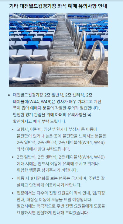 대전월드컵경기장 주변 주차 공간은 매우 협소하기 때문에 대중교통을 이용하는 것이 권장됩니다. 경기장 주변 교통 혼잡이 예상되며, 주차는 제한적이니, 경기장으로 오실 때는 버스나 지하철을 활용하는 것이 좋습니다.