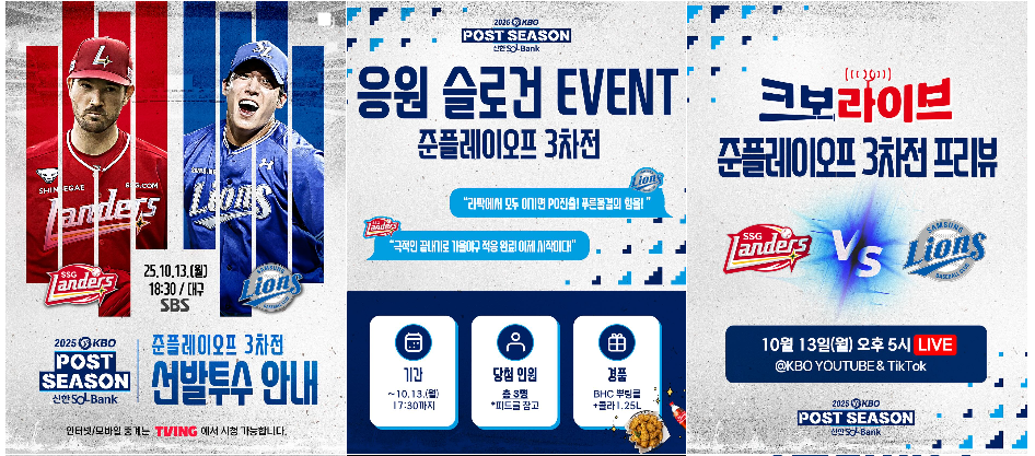 - 3차전 (10/13·대구) SSG vs 삼성 (18:30 시작)