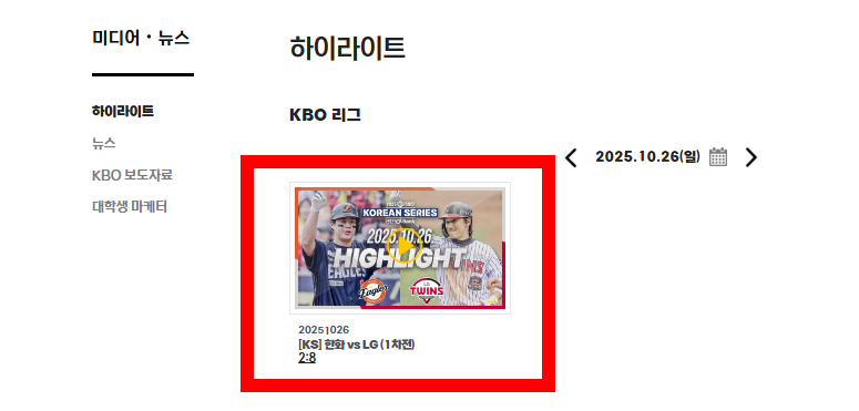 하이라이트 영상은 모든 팬에게 무료로 제공되며, 가입이나 로그인 없이 주요 득점, 홈런, 결정적인 수비까지 압축된 영상으로 정리되어 있습니다.