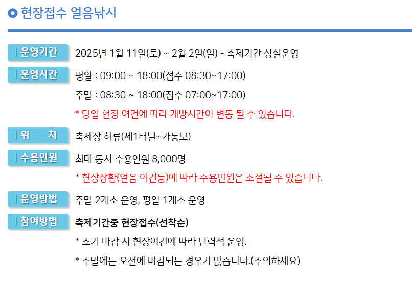 운영 기간: 2025년 1월 11일(토) ~ 2월 2일(일) (축제 기간 중 상설 운영)