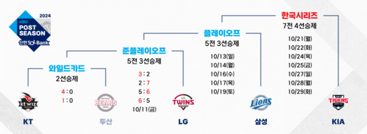 2024 KBO 준플레이오프 5차전은 KT 위즈와 LG 트윈스 중 한 팀이 플레이오프 진출을 확정 짓는 중요한 경기입니다. 양 팀의 모든 팬들은 숨죽이며 경기를 지켜보게 될 것입니다. 이번 경기가 끝나면 승리 팀은 플레이오프에서 삼성 라이온즈와의 격돌을 준비하게 됩니다. 팬 여러분은 10월 11일에 열리는 운명의 5차전의 일정과 중계정보 확인하셔서, 흥미진진한 가을야구 절대 놓치지 마세요!