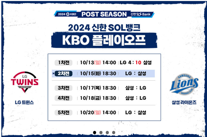 삼성은 1차전에서 10-4로 LG를 제압하며 기세를 올렸고, LG는 2차전에서 반드시 승리해야 하는 상황입니다. 그럼 2차전 중계 일정과 선발 경기예상 작성해 보겠습니다.