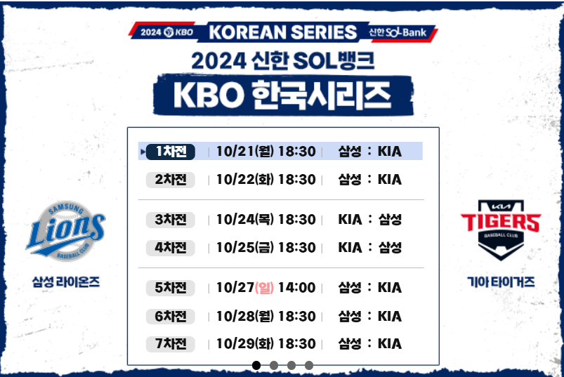 2024 KBO 한국시리즈 1차전은 KIA 타이거즈와 삼성 라이온즈의 치열한 대결로 많은 팬들의 기대를 모으고 있습니다. 예매 일정과 경기 중계를 확인하시고, 뜨거운 승부를 놓치지 마세요!