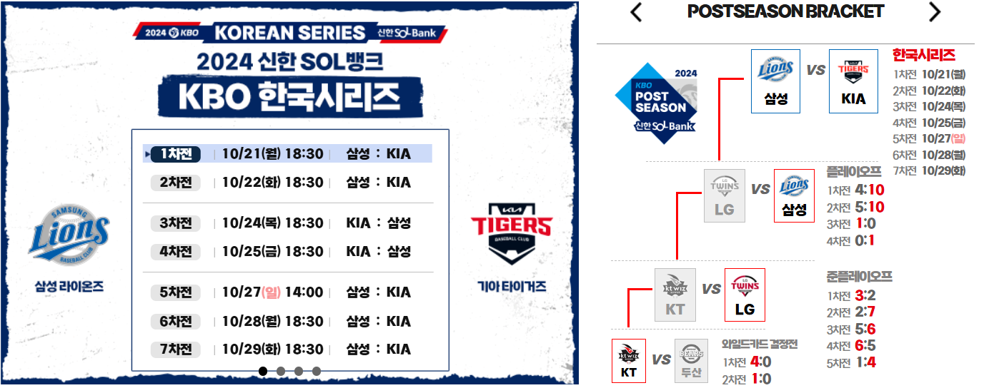 2024 KBO 한국시리즈 1차전이 다가오고 있습니다. KIA 타이거즈와 삼성 라이온즈의 역사적인 맞대결! 과연 9년 만에 한국시리즈에 진출한 삼성의 기세가 이어질까요, 아니면 정규시즌 1위 KIA가 우승 트로피를 차지할까요?