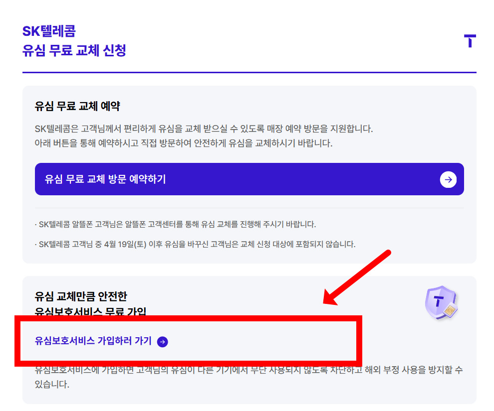 - 매장 직원에게 유심 무료 교체를 요청합니다.